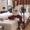 Pigiama donna in interlock con ricamo “Bella e impossibile” e dettagli in pizzo
